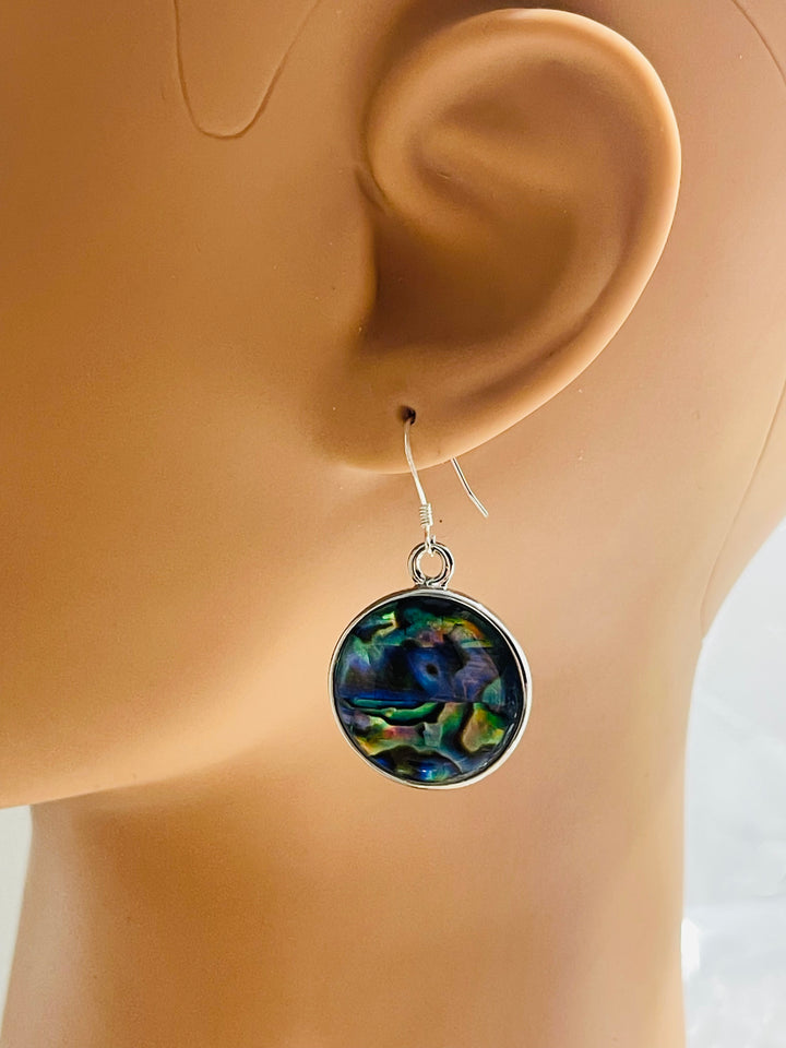 Paire de boucles d’oreilles ronde en argent 925 et en coquille d’ ormeau