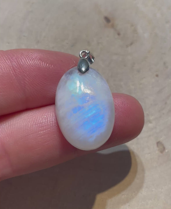 Il s’agit d’un magnifique Pendentif serti d'une (appelé aussi pierre de lune arc en ciel).